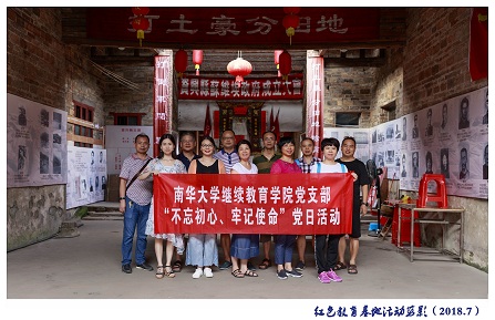 7月20日至7月22日,继续教育学院党支部组织支部11名党员开展了“不忘初心,牢记使命”的支部活动,全体党员参观了红色流华湾、资兴市苏维埃政府旧址、移民博物馆,回顾湘南起义波澜壮阔的红色历史画卷,支部全体党员在资兴苏维埃政府旧址重温了入党誓词,支部书记曾庆生同志给大家上了“不忘初心,牢记使命”党课。